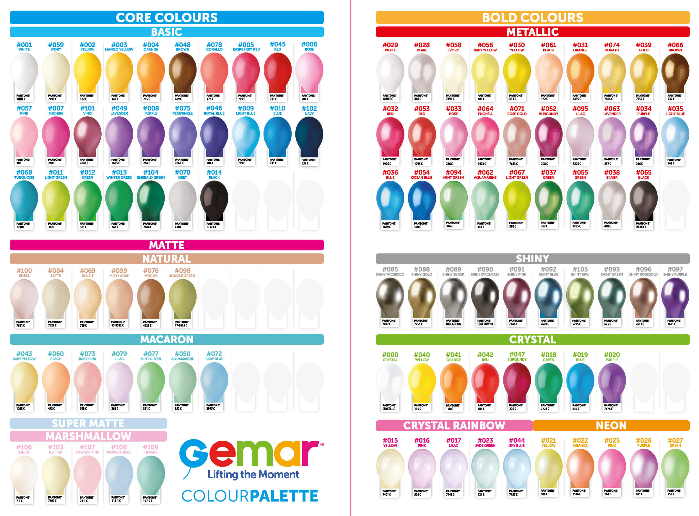 Kvalitní nafukovací balónky vyrobené z přírodního kaučuku mají jasné a živé barvy. I po nafouknutí zůstává jejich barva sytá a výrazná. Naše nabídka nafukovacích balónků zahrnuje pestrou škálu barev od jemných pastelových odstínů přes krystalicky čiré, fluorescenční neonové barvy, metalické a perleťové odstíny až po mnohobarevnou olejovou duhu.